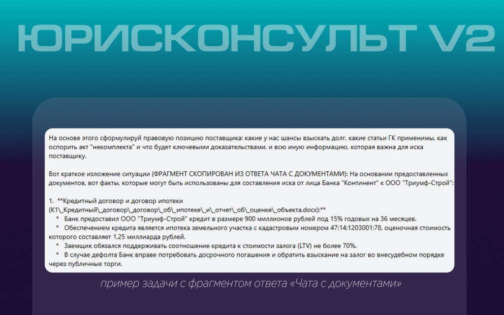- «Чат с документами» — извлекает факты и формулирует фабулу.